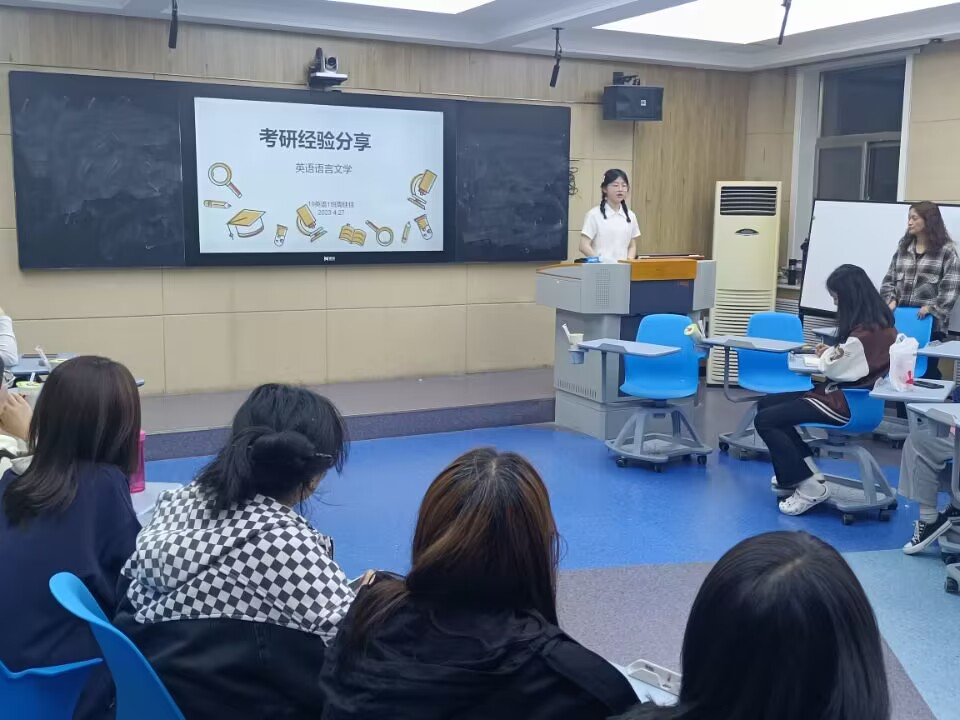 为总结考研经验,帮助20级学生尽快明确方向,更好地准备考研,本周我院英语专业在外语楼104召开了专业分方向考研经验分享会,由19级已成功被录取的几位同学为大家进行考研经验分享,20级学生代表参会。