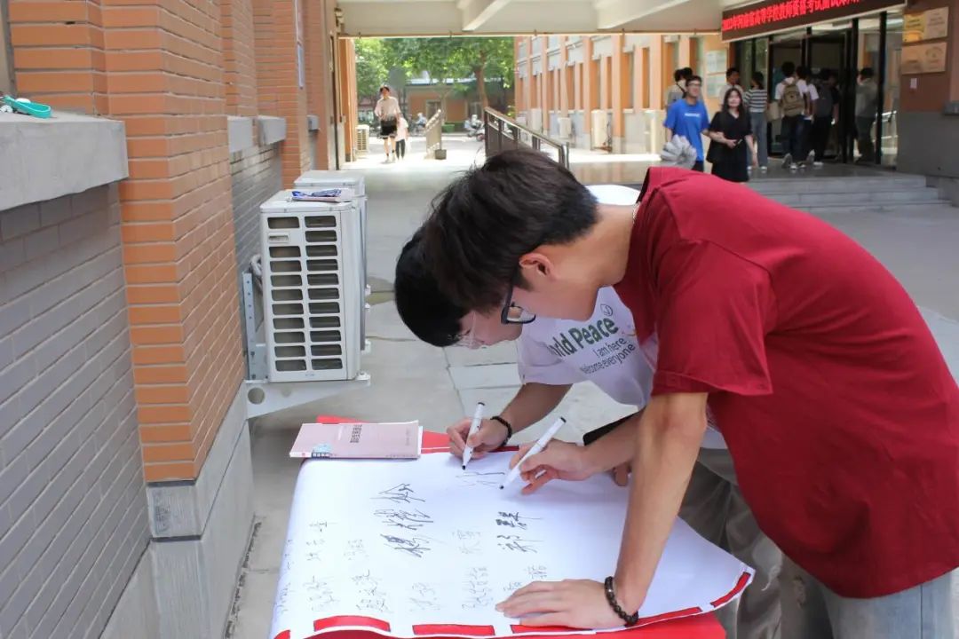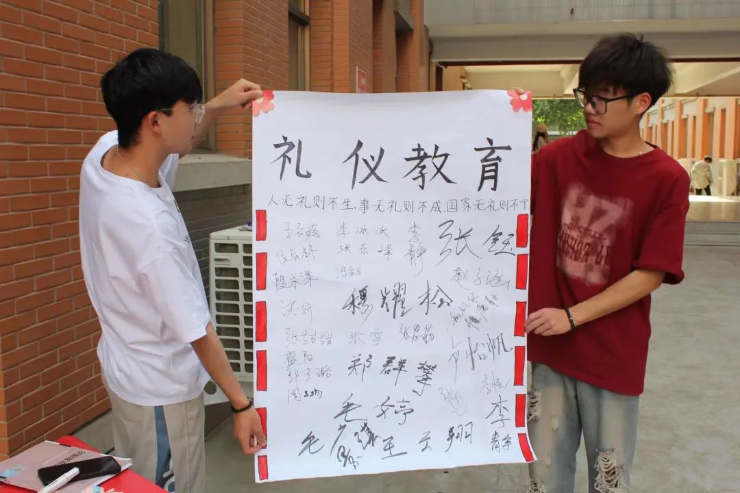 为了进一步推动青少年讲文明懂礼仪工作,让学生们正确认识到校园文明礼仪,我院礼仪部在外语楼前举办“文明校园,礼仪教育”主题签字活动。