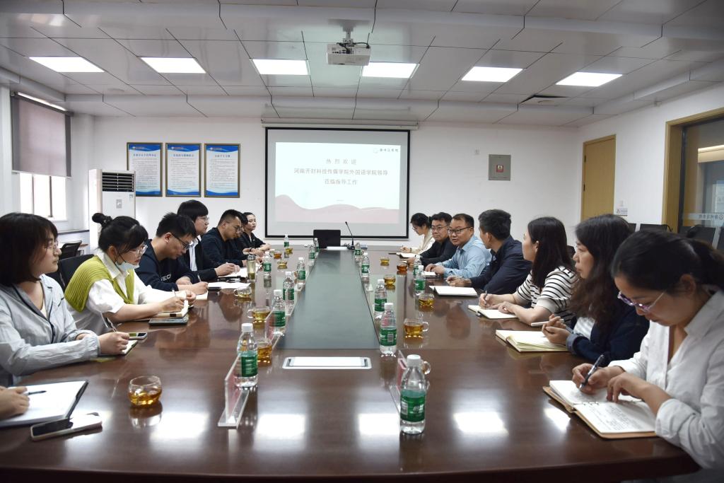 5月22日,河南开封科技传媒学院外语学院党总支书记吴春杰、副院长马浩、商务英语系主任刘畅、英语系主任胡会丽、大学外语教研部(一)主任杨国景、大学外语教研部(二)主任彭晓红、商务英语系骨干教师陈静、崔文琦一行8人莅临我院参观交流,并在外语楼W107举行了座谈。我院院长邱培磊、党委书记王克志、副院长赵保成、商务英语教研室主任葛莹辉、英语教研室主任韩笑、大学英语教研室主任程玮、考研英语教研室主任王霞参会,会议由院长邱培磊主持。