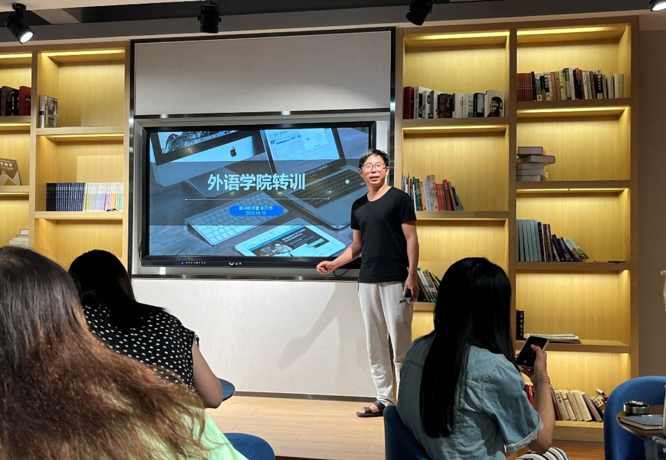 为促进我院教师外语教学能力提升,6月15日下午,我院在外语楼W102继续开展外出学习教师转训活动。翻译专业教研室主任郜万伟介绍了他参加第二届全国译技术教学科研创新专题论坛的培训情况,并就ChatGPT在翻译中的应用分享了自己的培训心得。