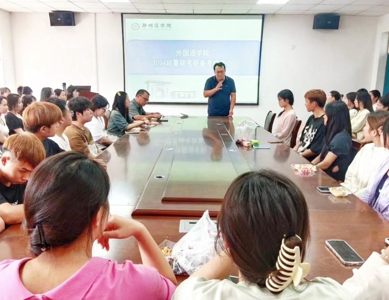 为了深入了解2024届暑期留校学生的备考情况,为考研学子加油鼓劲,9月5日,外国语学院召开了暑期考研留校学生座谈会。院长邱培磊、副院长赵保成、葛莹辉老师、曹晓晨老师、团委书记王子浩和全体留校考研学生参加了此次座谈会,本次会议由辅导员兰敬高老师主持。