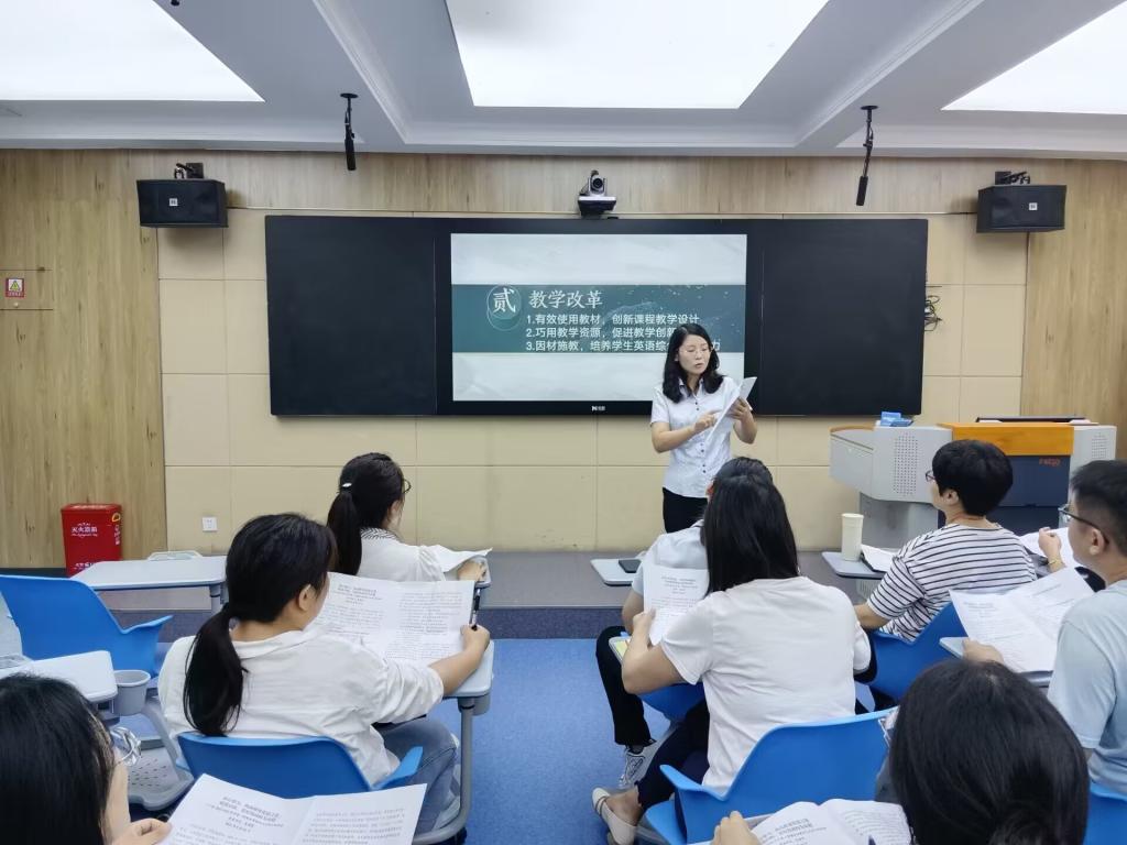 为确保秋季学期大学英语第二教研室各项教学工作平稳有序运行,9月14日全体教职工大会之后,大学英语第二教研室全体教师在W104召了开2023—2024学期第一次教学会议暨开学前教学准备工作部署会,教研室主任王霞主持并作工作安排。会议上,全体教师共同学习了董事长、书记、吴校长的讲话精神,重点就吴校长讲话中提到的“细化大学英语改革措施”进行了研讨。