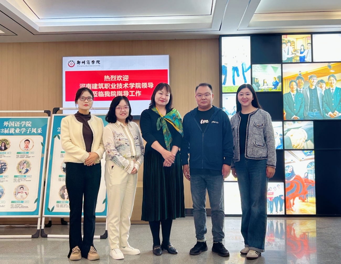 10月8日,河南建筑职业技术学院基础教学部英语教研室主任闫鑫、外语实训中心管理副主任张婷婷与英语教研室骨干教师王芳一行3人莅临我院参观交流,并在外语楼W107举行了座谈会。我院院长邱培磊、商务外语实验中心主任曹晓晨参加会议,会议由院长邱培磊主持。