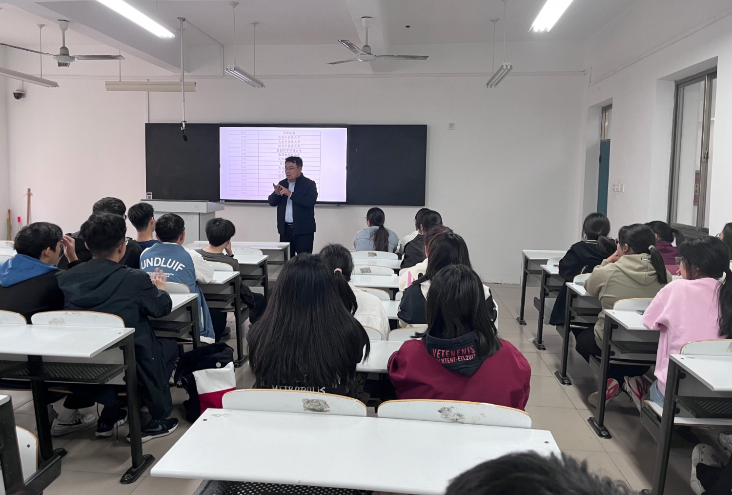 德语专业教师赵琦和游冬冬还向新生介绍了基础阶段的学习规划和学习方法。本次会议的最后还邀请了就业类和考研类优秀学生代表为大家进行德语学习方法、就业以及考研道路等方面的经验分享。