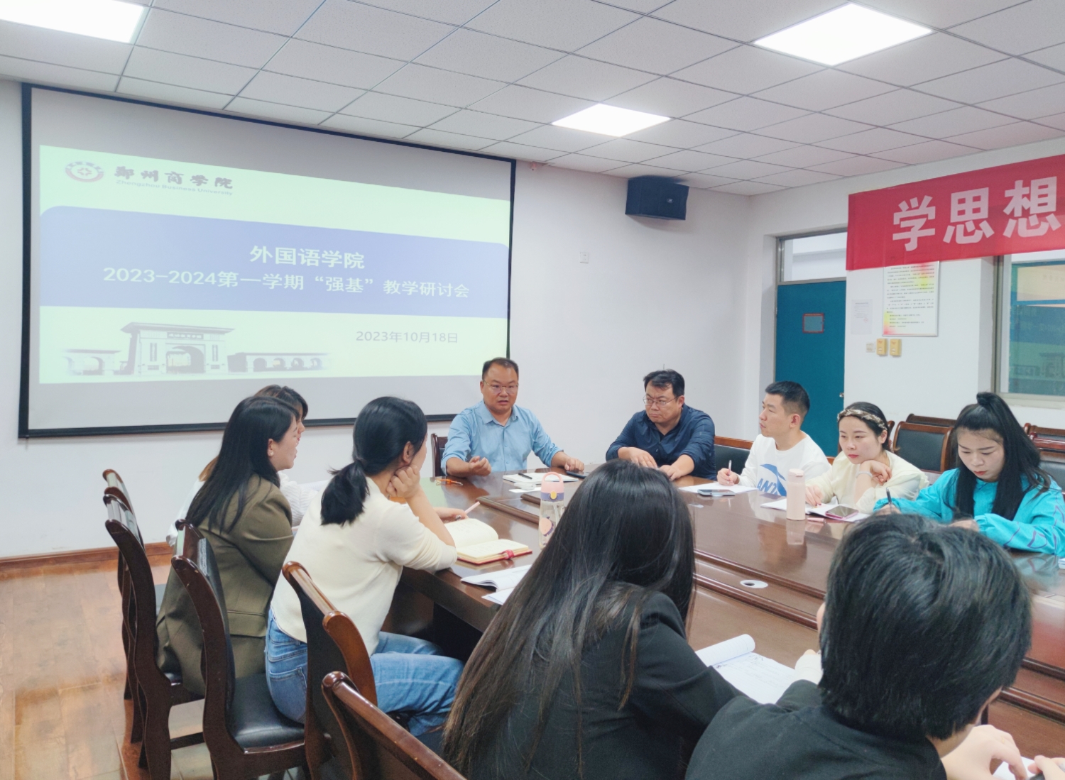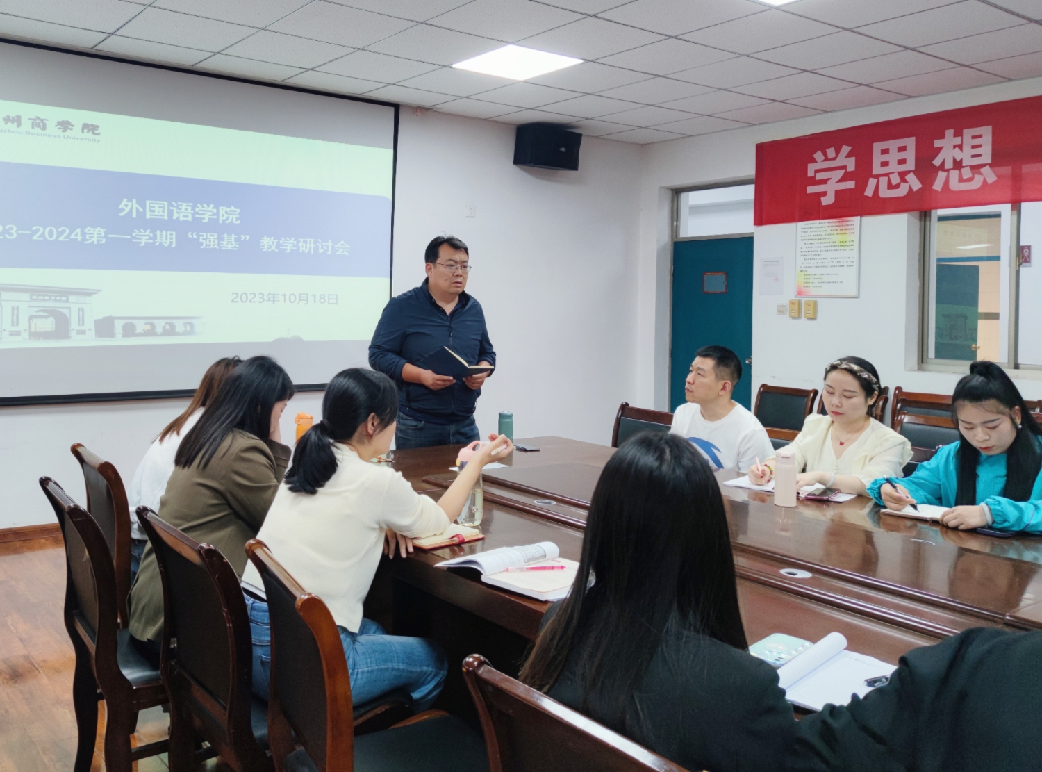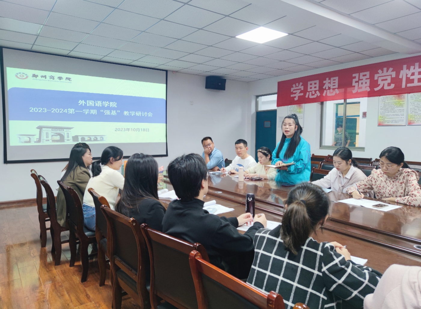 为夯实学生的语言基础,抓好教风学风协同建设,持续推进“强基”教学计划,10月18日下午,我院在W209召开了本学期第一次“强基”教学研讨会,我院院长邱培磊、副院长赵保成及各专业全体语言基础课教师参加了本次会议。