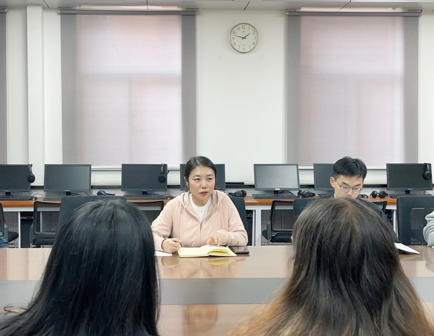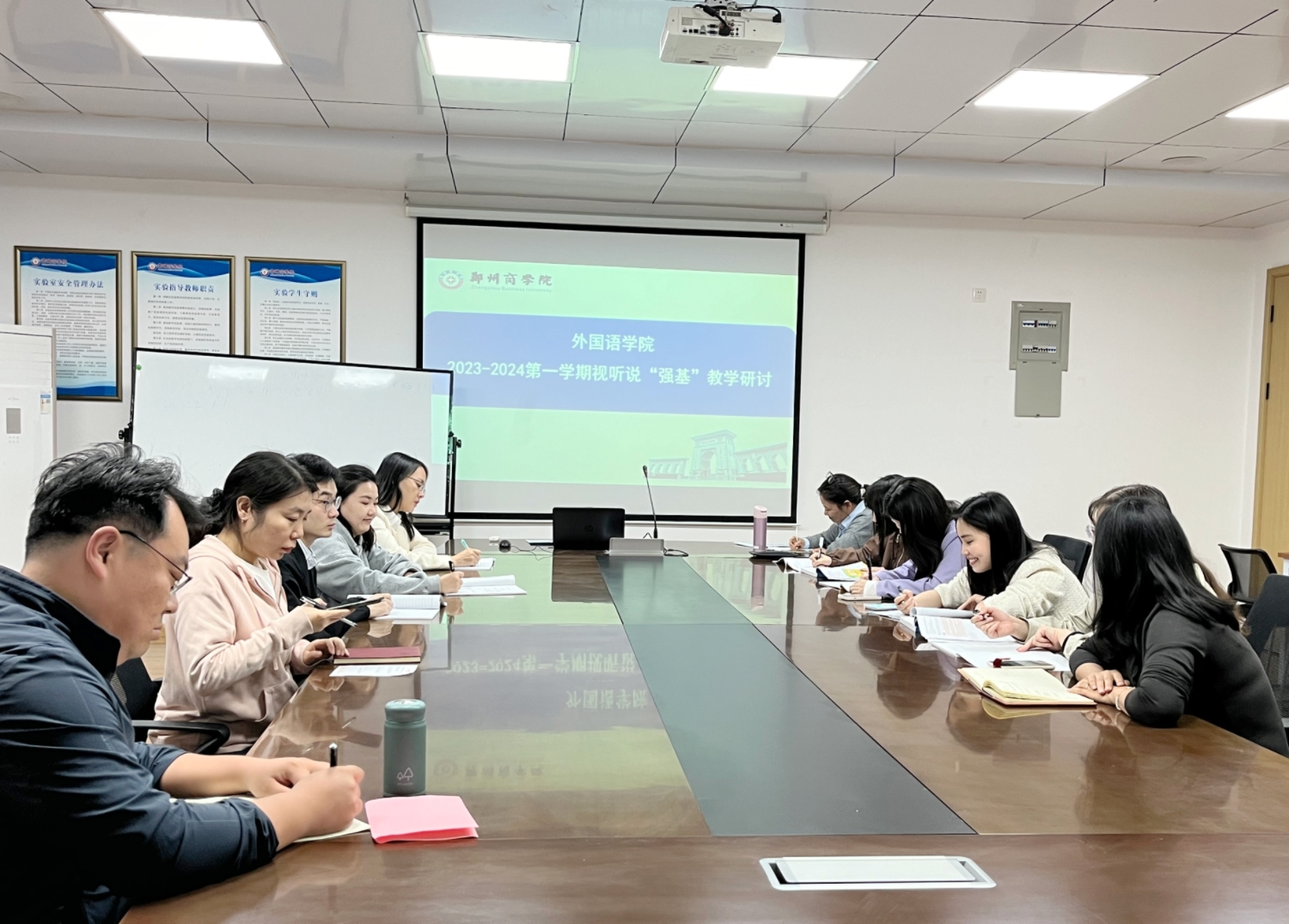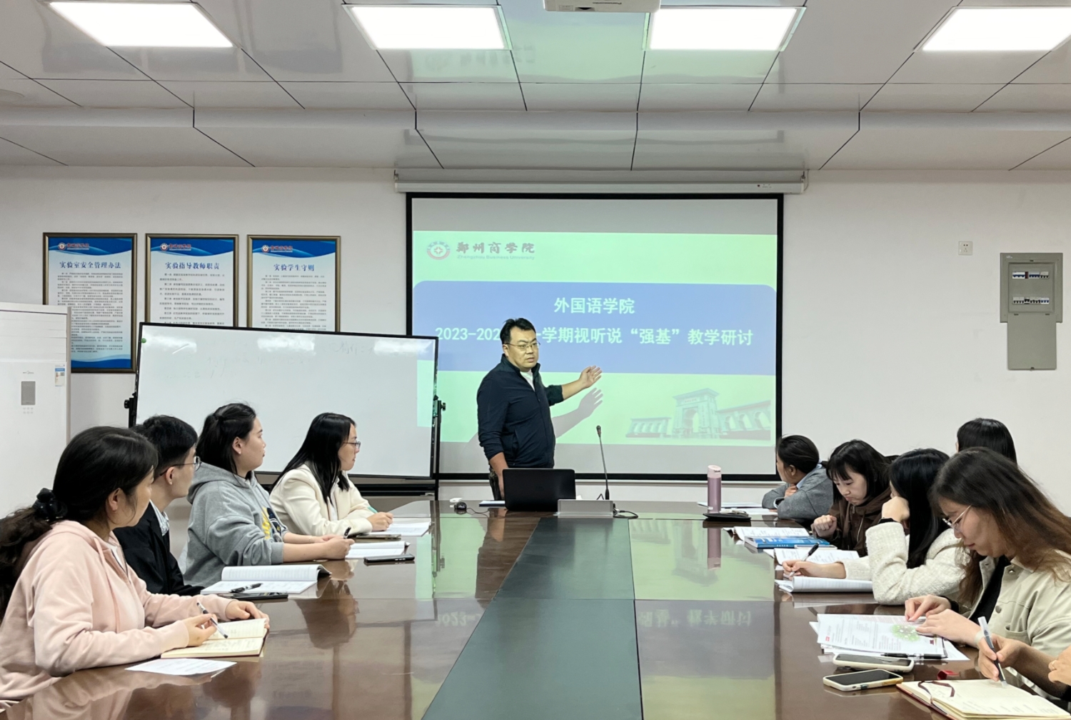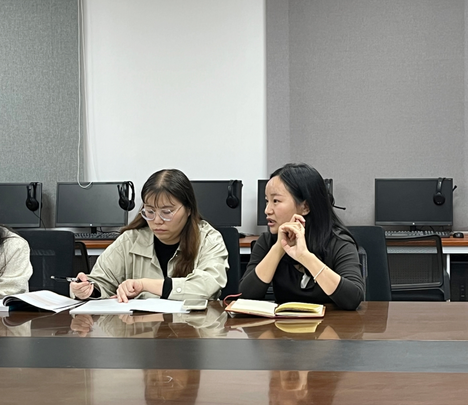 为认真落实我校教学综合改革,抓实教风学风协同建设,我院在开展《综合英语》“强基”教学计划的基础上,协同《英语视听说》课程,同步强化对学生听说读写全面语言能力培养,于10月25日在W107召开本学期视听说课程“强基”教学研讨会。本次研讨会由副院长赵保成主持,英语、商务英语、翻译及小语种教研室视听说教师参会,翟茹洁与程玮老师就视听说课程教学方法、课堂管理、作业检查、数字化平台的使用等进行分享。