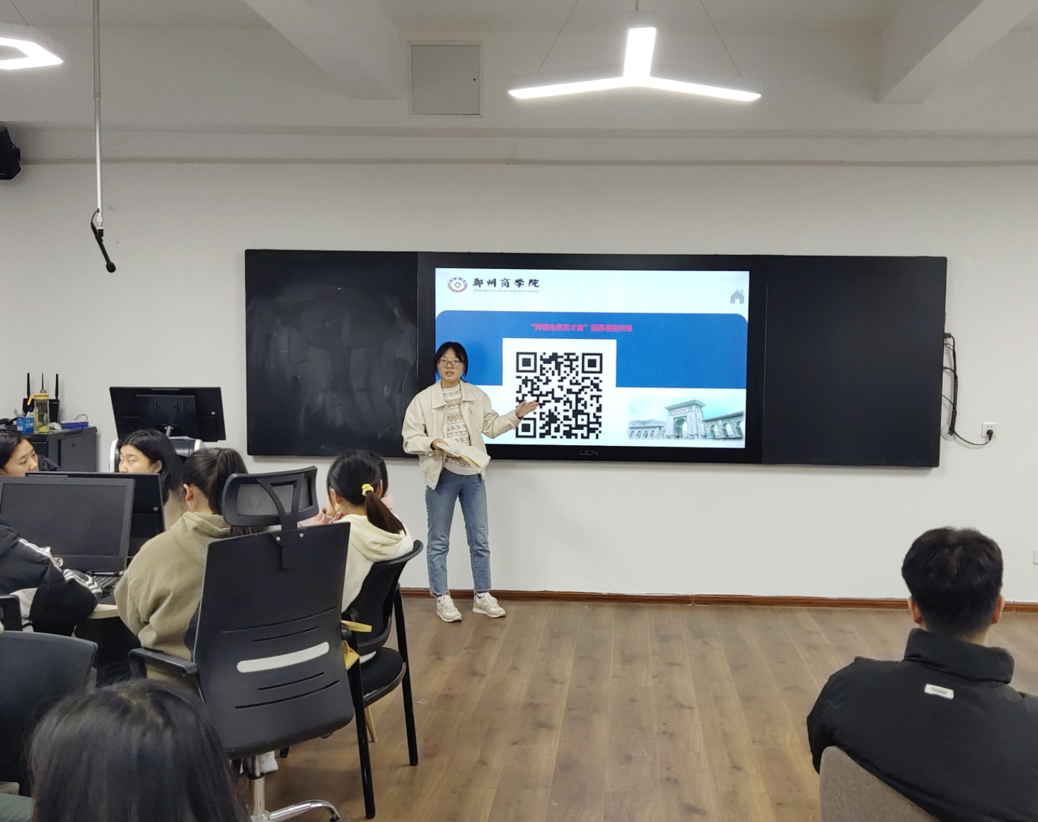 最后,王玉老师对本次宣讲会进行了总结,并对学生们提出的问题进行了现场解答。宣讲会整体气氛十分热烈,学生们积极提问,展现出对“跨境电商英才班”的浓厚兴趣。宣讲会在学生们积极踊跃的参与下取得了圆满成功。