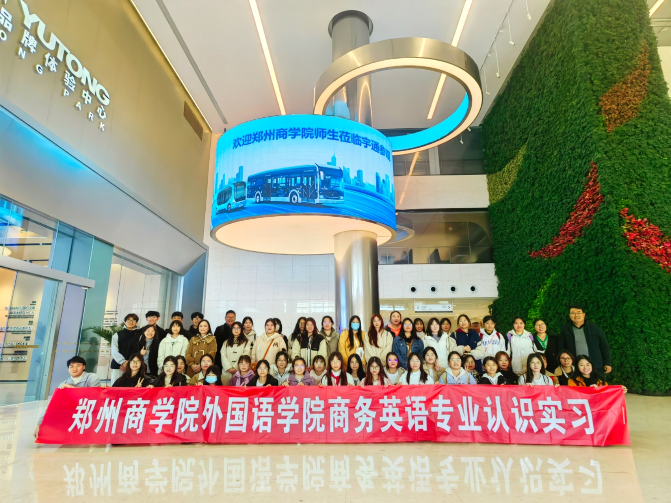 为服务我校跨境电商创新型人才培养,充分发挥实践教学在专业人才培养中的作用,外国语学院认真组织开展商务英语专业的认识实习,不断提升专业教学质量,增加师生对产业、行业和跨境营销岗位的认识。11月16日,我院副院长赵保成、商务英语专业教师李明豪、段田园、董艺、王平以及辅导员钟佳音带领2022级商务英语学生赴宇通集团开展专业认识实习。