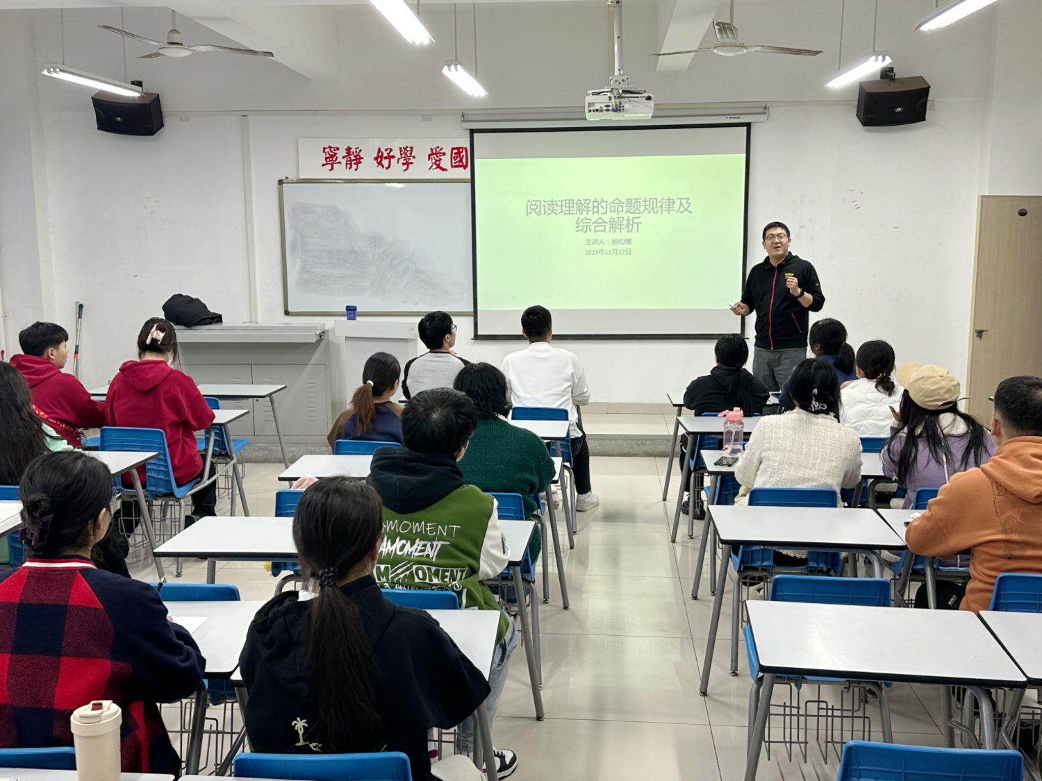 全国硕士研究生考试即将到来,为使我校20级考生有效提升英语阅读做题技巧,11月22日,我院考研组教师杨钧博在广恩楼210教室针对考研英语中的阅读部分为在场考生进行考前冲刺指导。