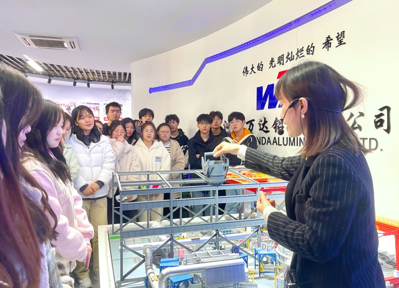 商务英语专业师生到达河南万达铝业有限公司后,共同观看了万达铝业纪录片,对万达铝业的发展历程、目前的创新技术以及产品布局有了初步认识;随后在讲解员的带领下,同学们参观了万达铝业展厅,了解万达铝业目前的先进技术和设备,零距离观察了万达铝业的创新产品;最后同学们戴上安全帽,亲身体验车间生产,近距离接触万达铝业完备且高效的生产线。最后公司王总表示,欢迎郑商学子加盟公司,为巩义贸易的繁荣发展贡献自己的力量。