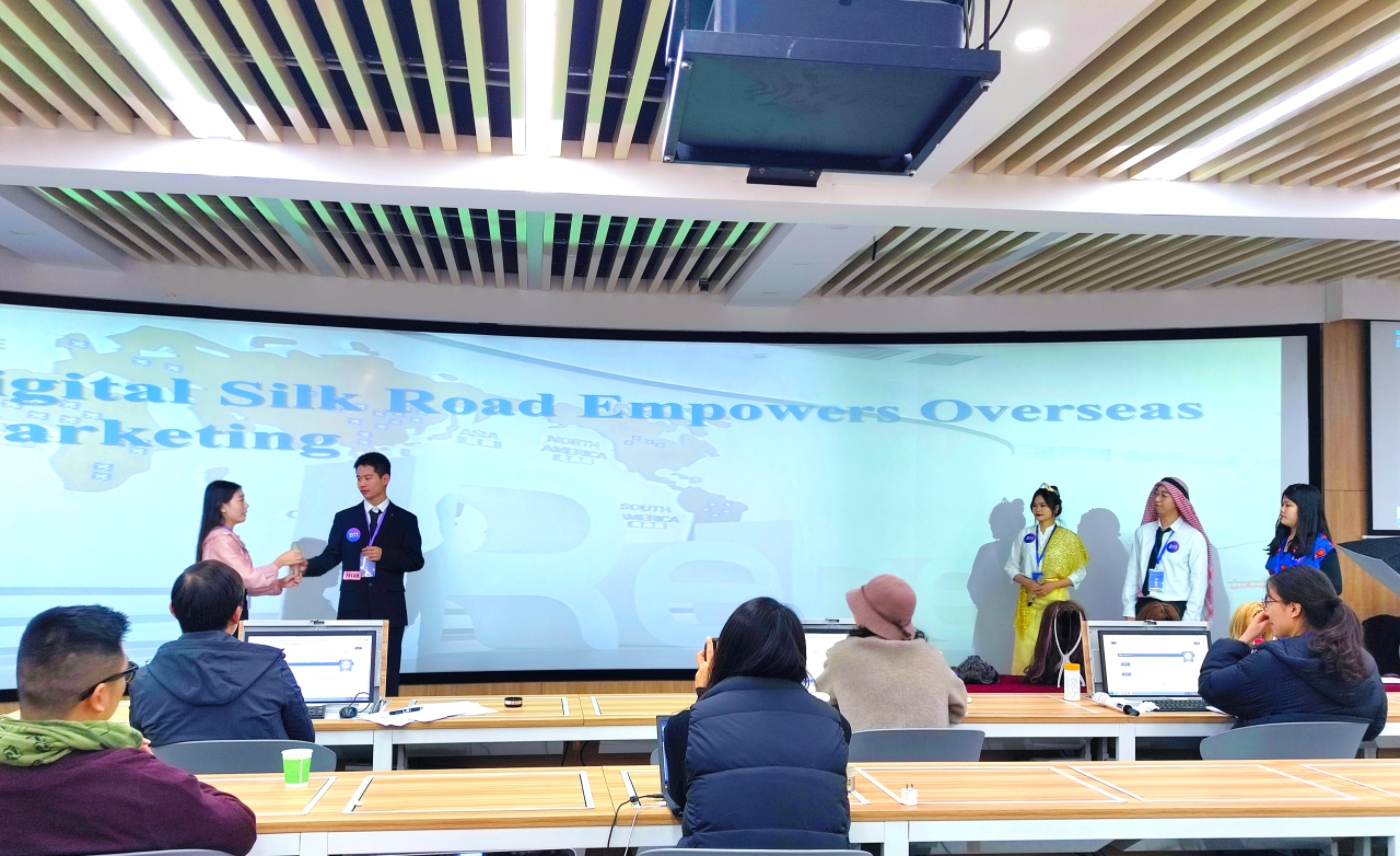 本届“亿学杯”全国商务英语实践技能大赛由全国大学生创新创业实践联盟、中国国际商会商业行业商会商务英语研究委员会主办,安徽财经大学承办,福建亿学教育科技集团有限公司协办。大赛采用“平台知识竞赛+商务主题演讲”形式完成,主要考核学生的商务英语理论基础知识、实务操作、演讲等商务综合技能。比赛中,我院参赛选手口语表达流利、回答问题反应迅速,配合默契,圆满完成了主题演讲,精彩呈现了企业调研成果展示,展现了我院商务英语学子的风采。