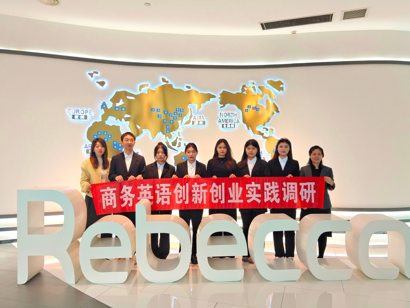 商务英语专业历来高度重视全国商务英语实践技能大赛。比赛前期,商务英语教研室“实践大赛智囊团”围绕本届大赛“海外数字营销赋能企业发展”的主题进行专题研讨,选定“河南瑞贝卡发制品有限公司”为调研对象,并于11月3日进行了实地调研,学生们通过参观展厅、实地考察生产车间、与跨境营销负责人面对面访谈,深入了解瑞贝卡海外数字营销发展现状。