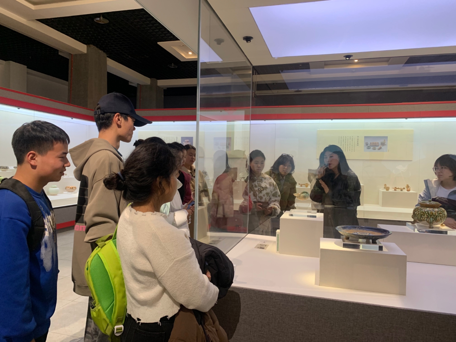 认识实习的第二站是巩义市博物馆,同学们跟随讲解员了解了博物馆的镇馆之宝,仔细端详了博物馆展示的大量的陶瓷器件,欣赏唐三彩的绚丽,观察添翼的瑞兽,徜徉在璀璨的文化中。