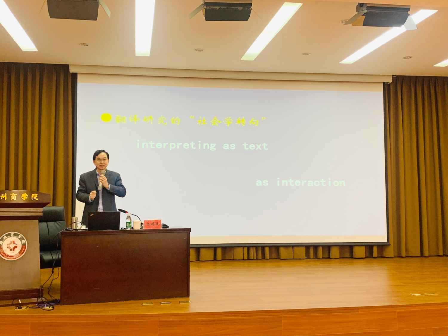 12月21日,全国翻译专业研究生教育指导委员会专家委员会委员、河南省涉外翻译与语言服务专家指导委员会主任杨玮斌莅临我校,为我院的老师和同学们进行了一场别开生面的讲座。出席此次讲座的有院长邱培磊、副院长赵保成、翻译专业教研室主任郜万伟,学院全体教师和21、23级翻译专业的学生参加讲座。