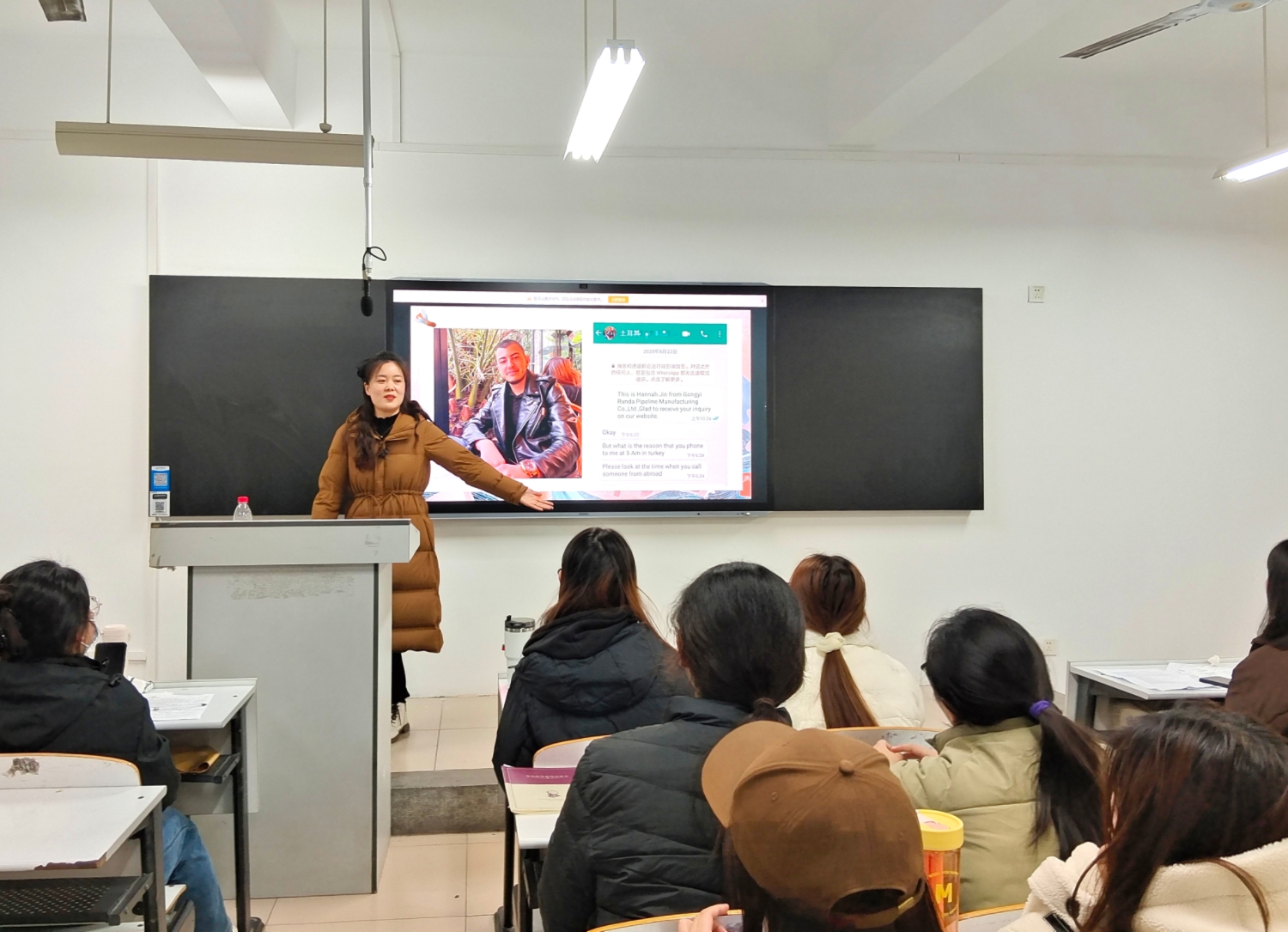 随后,晋经理围绕外贸职场、岗位技能及有趣的订单成交案例为英才班学员带来了别开生面的外贸实战经验分享。首先,晋经理结合自身从事外贸行业的经历分享了自己在外贸职场中的感受与收获,她强调,“外贸是工作环境相对轻松的一种职业”、“国际贸易的核心是交流”,加深了学生们对于外贸职业的认识,激发了大家的从业热情。随后,晋经理为同学们梳理了外贸岗位中所必需的商务英语专业知识,包括贸易术语解释、国际货物贸易洽商程序等,并为同学们展示了外贸业务中的询盘与报价真实案例。她指出,同学们要一定要善于使用各种媒体资源了解各个国家和地区的经济、文化、历史、地理、环境及风土人情等知识,做好客户背调,寻找与客户沟通的切入点,以促成客户开发。最后,晋经理分享了自己从事外贸行业以来的有趣客户及其详细的订单成交案例。她以专业取信于客户、以态度感染客户、自信输出中国文化、满足顾客情绪价值,为同学们提供了真实而生动的客户开发案例。晋经理强调,专业学习一定要有所侧重,要通过阅读或者学习不断开阔眼界,要注重从日常沟通中培养自己的高情商,为未来从事外贸职业做好充分的准备,适应职场需求。