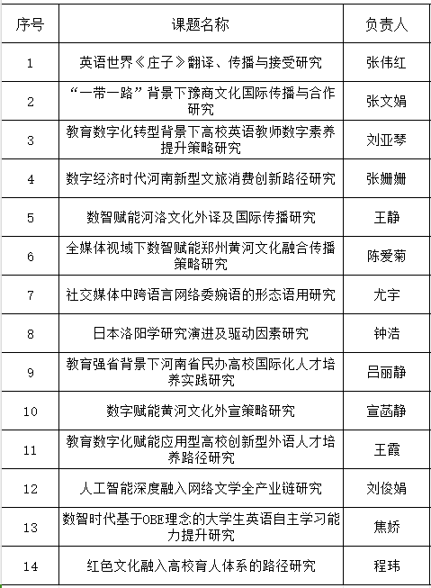 根据《关于组织申报河南省社科联2024年度调研课题的通知》要求,我院积极组织申报工作,严格把关,充分论证,共申报28项,经学院评审委员会评审决定,现就2024年度河南省社科调研课题申报拟推荐名单(14人)公布如下: