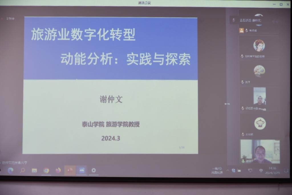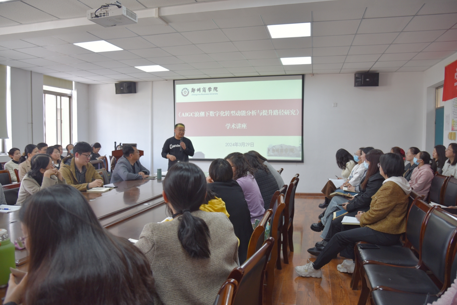 为提升教师团队科研水平和素养,更有针对性地准备高级别项目申报,3月29日下午,我院特邀请国家社科基金项目主持人、中国旅游研究院博士后、泰山学院旅游学院副院长谢仲文教授作题为《AIGC浪潮下数字化转型动能分析与提升路径研究》的学术讲座,外语学院院长邱培磊、副院长赵保成及全体无课教师在W209观看了此次讲座,并进行了深入的学习交流。