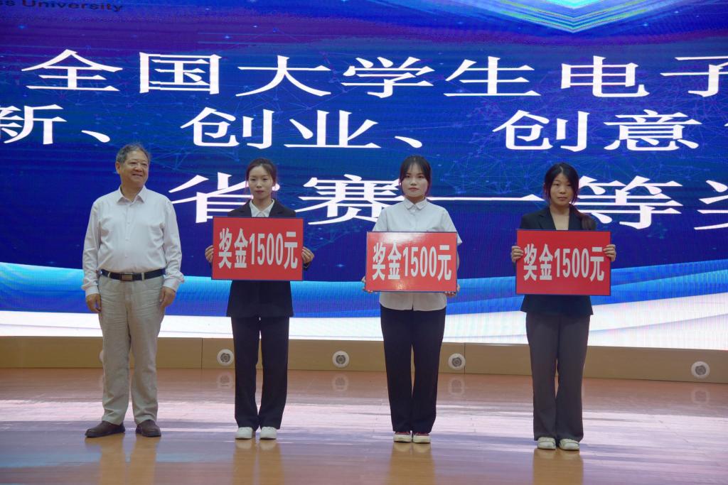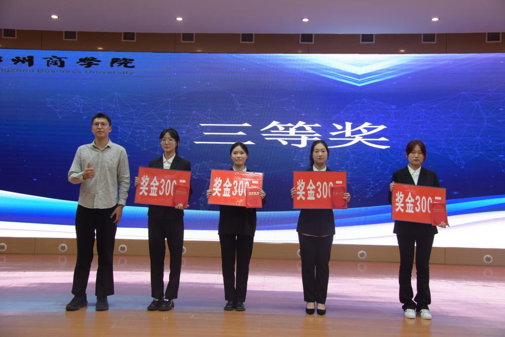 大赛伊始,我院对2023-2024学年第二学期商务英语学科竞赛获奖进行表彰分别为获POCIB全国外贸从业能力大赛特等奖的三支赛队和获全国电子商务“创新、创业、创意”挑战赛河南省一等奖的三支赛队颁奖。