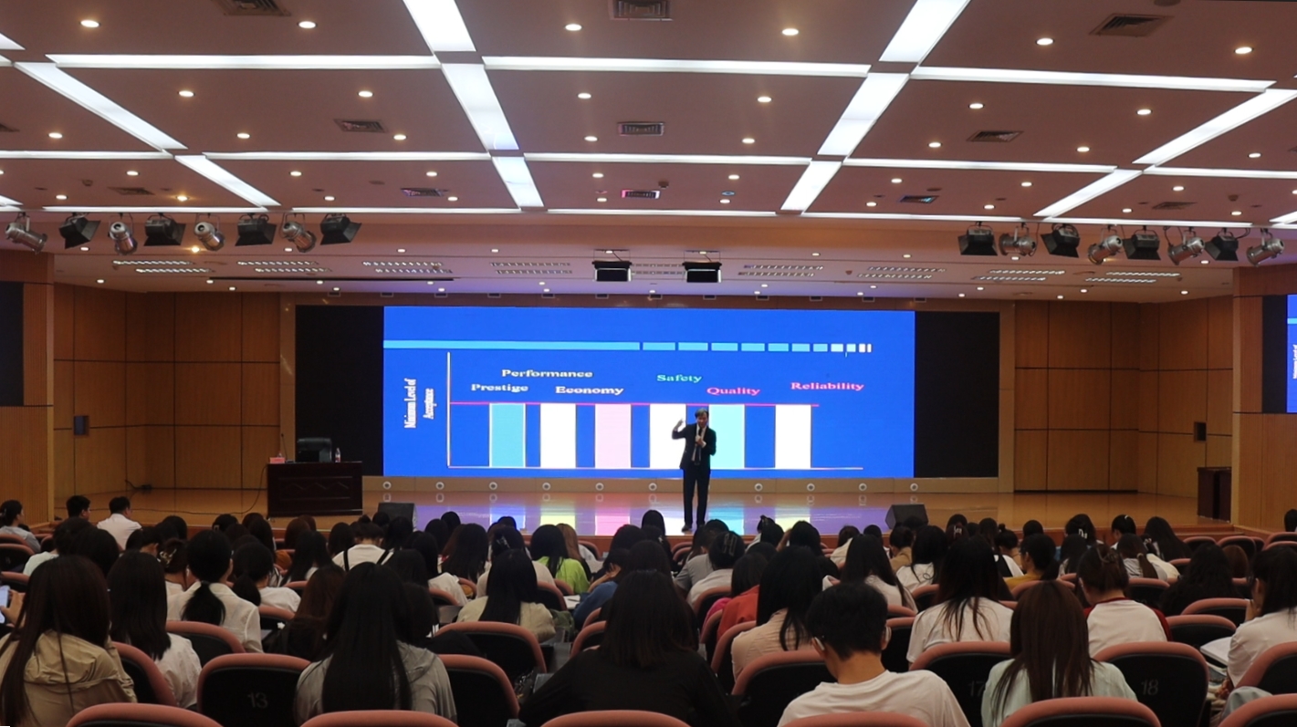 为增进学生对市场营销领域的深入理解,提升国际视野与专业综合素养,5月17日下午,我校特邀请温州肯恩大学商务与公共管理学院市场营销专业的领军人物Somkiat Mansumitrchai教授,在图书馆一楼报告厅开设了一场名为《思维斗争:市场营销的关键是定位》的专题讲座。此次活动由外国语学院赵保成副院长主持,近300名外语学院学生踊跃参与。