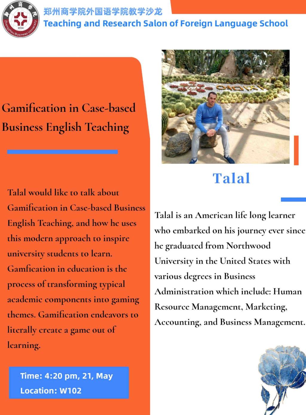 本次教学沙龙将探讨游戏化教学方法在商务英语案例教学中的应用,欢迎全校教师踊跃报名参加,共同研讨、一起交流。