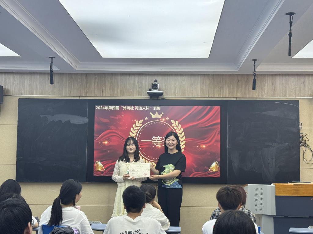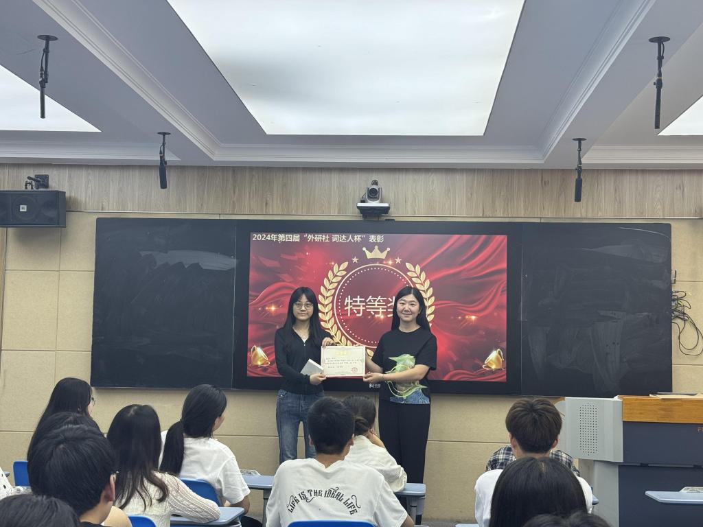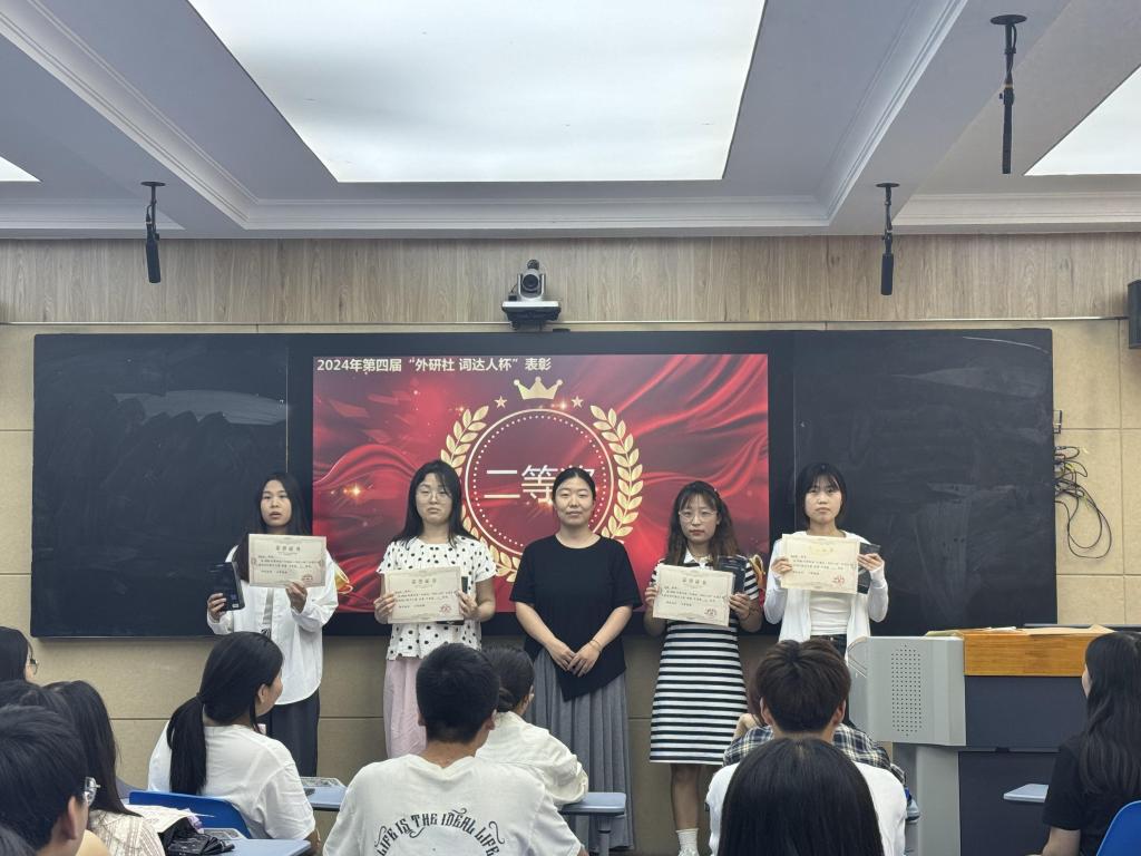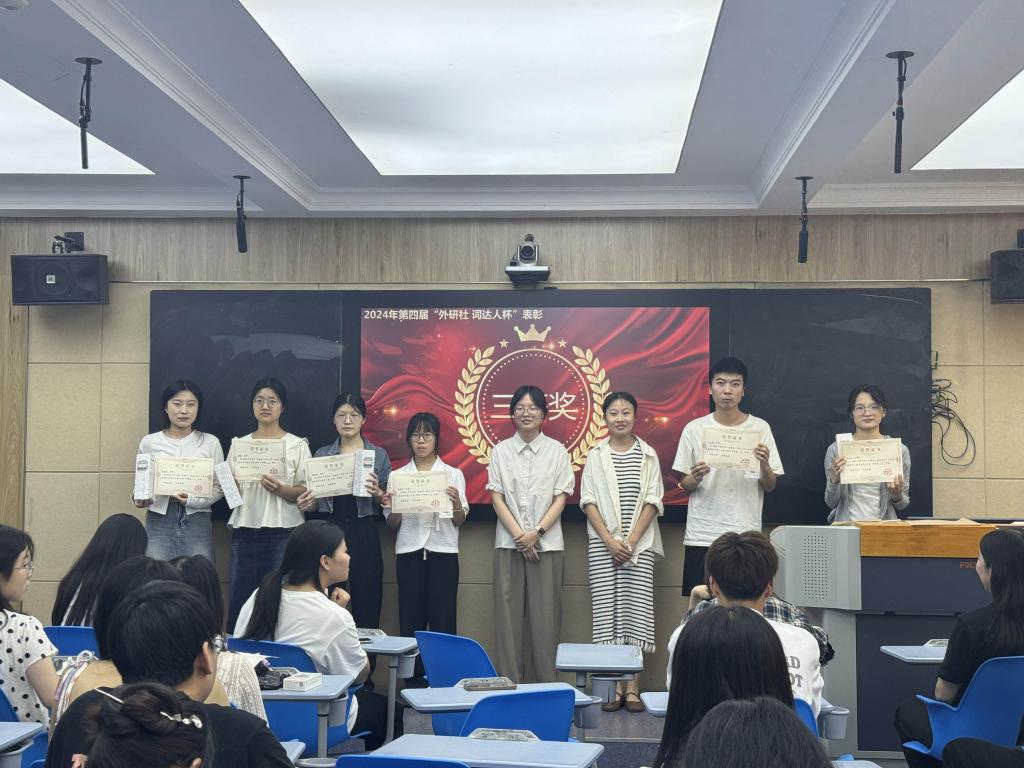 5月23日,我院在外语楼W104举行第四届“外教社·词达人杯”全国大学生英语词汇能力大赛校赛表彰大会。此次活动旨在表彰在本次大赛中表现突出的学生和教师,以鼓励他们在未来的英语学习中继续努力、再创佳绩。