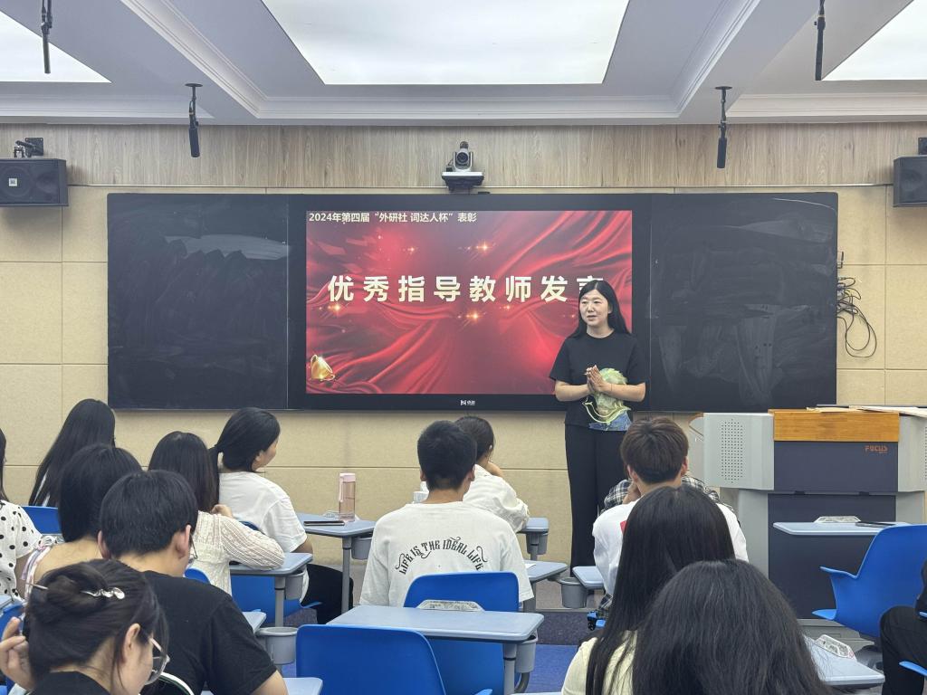 颁奖典礼最后,优秀指导教师代表曹晓晨老师分享了在指导学生备赛过程中的心得。曹老师对各位获奖的同学表示祝贺,并鼓励大家今后要积极参加各类英语比赛,不断提升自己的英语水平。