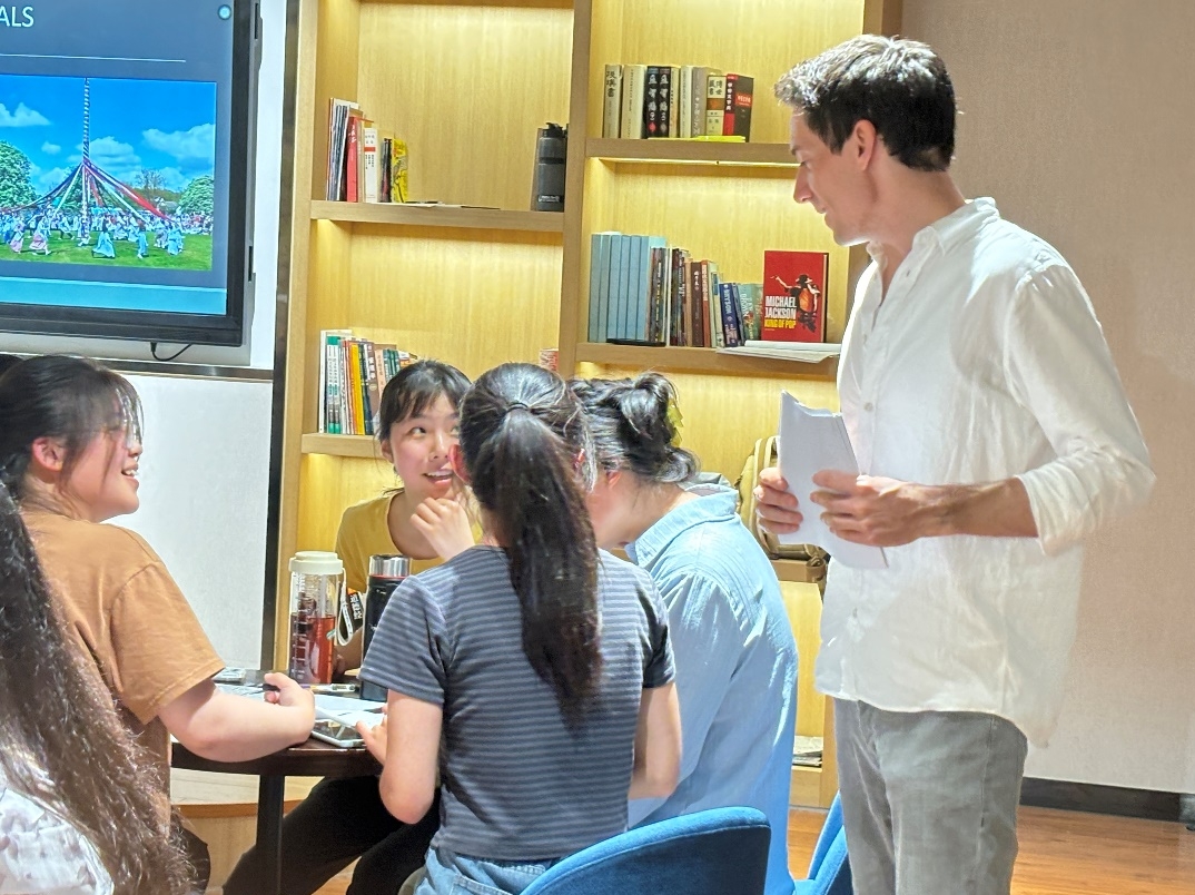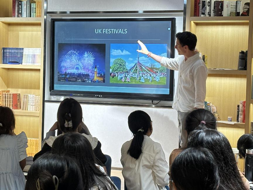 活动伊始,外教向同学们简单做出了自我介绍。Kris来自英国,从2011年开游历世界,在国外旅行、工作和做志愿者。直到2018年,他第一次来到巩义,并执教于999策略白菜手机论坛。接着,活动紧密围绕“Festival”这一主题展开,Kris通过生动的图片、视频和有趣的互动,带领学生深入了解不同国家和地区关于节日的丰富文化内涵。同学们认真聆听、积极参与,沉浸在对各种节日的探索与体验之中。通过本次活动,同学们不仅学到了丰富的知识,还培养了跨文化交流的能力。