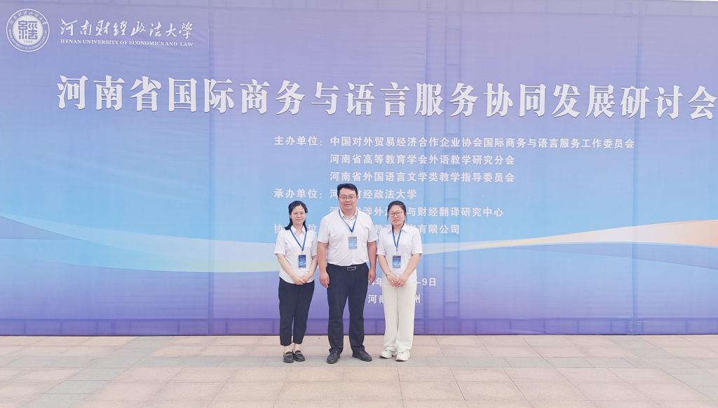 2024年6月8日,我院副院长赵保成、商务英语教研室主任葛莹辉、教师段田园一行三人参加了在河南财经政法大学举办的首届河南省国际商务与语言服务协同发展研讨会。会议由中国对外贸易经济合作企业协会国际商务与语言服务工作委员会、河南省高等教育学会外语教学研究分会、河南省外国语言文学类教学指导委员会主办,旨在汇聚数智化商务语言新赋能,增强区域发展新动力,提升外语学科育人水平,深化河南省商务英语教育改革。