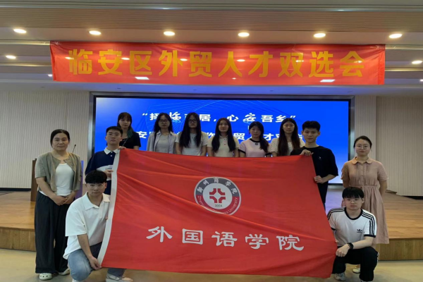 接着,“择临而安,心安吾乡”临安区区校合作外贸人才双选会正式启动。杭州市临安区人社局副局长陈继宏致辞,他从临安区的基本概况、人才政策、及区校合作事宜等介绍了临安区的情况。他希望今后双方能够进一步丰富合作内容、拓展合作形式,有效促进人才流动与资源配置,真正让双方合作落地生根、开花结果!接下来,我校代表卢学敏老师发言,卢老师表示学校将进一步畅通信息沟通渠道,紧密围绕地方产业发展需求,进一步加强人才交流,促进区校双向赋能、共同发展。