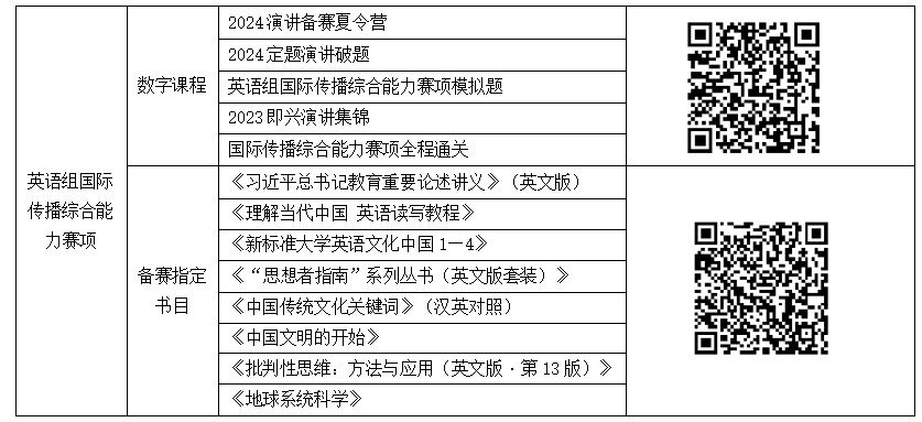 为帮助同学们更有针对性地备赛,大赛组委会依据大赛考查能力要求精心甄选备赛数字课程及书目,助力打磨语言技能,丰富知识储备,提升外语综合应用能力。