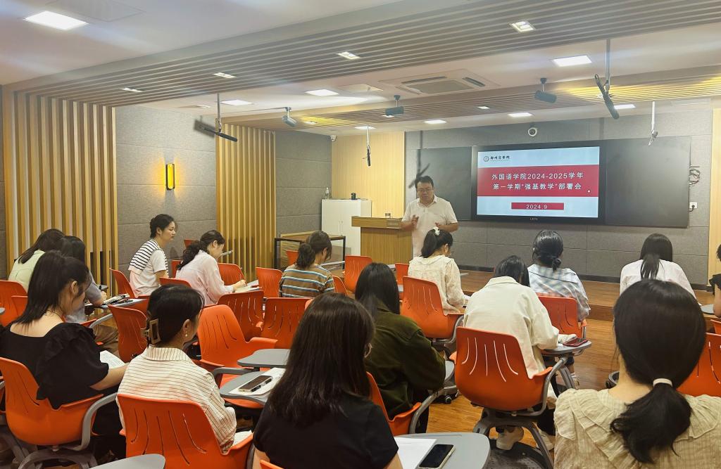 为持续夯实学生的语言基础,强化学生语言应用能力,营造紧张有序活泼向上的学习氛围,9月11日下午,我院在外语楼W108召开了本学期外国语学院“强基”教学期初部署会。各专业基础语言课程教师参加会议,副院长赵保成主持会议。