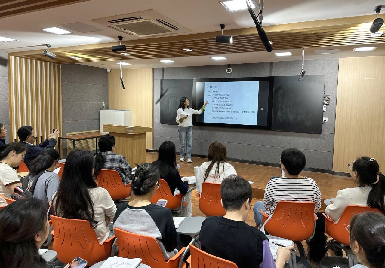 在具体实施方案环节,苏老师提出了教学设计可贯彻“五个以”的原则,即以课程思政为核心要求,以学生为中心,以结果为导向,以持续改进为目的,以满足国家、社会、学校和个人发展需求为目标。此外,她还强调要充分利用和整合线上学习资源,充分考虑学生需求的多样性和能力的差异性,确保教学活动兼顾丰富性、层次性、知识性和教育性。