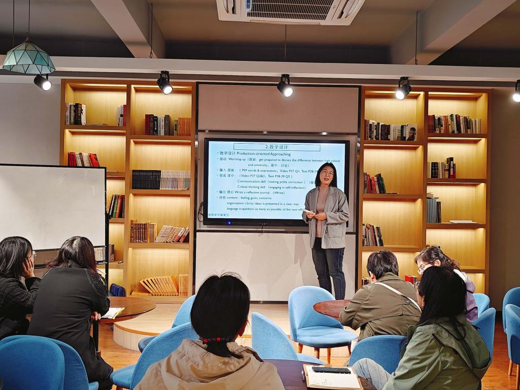 10月29日,我院大学英语第一教研室在W102成功举行了以“基于产出导向法提升学生交际能力与思辨能力的大学英语教学课例研究”为主题的研讨会。会议由教研室主任宣菡静老师主持,24级文科组课程组组长王甜丽老师主讲,深入探讨了产出导向法(Production-Oriented Approaching)在大学英语教学课堂教学中的应用与实践。