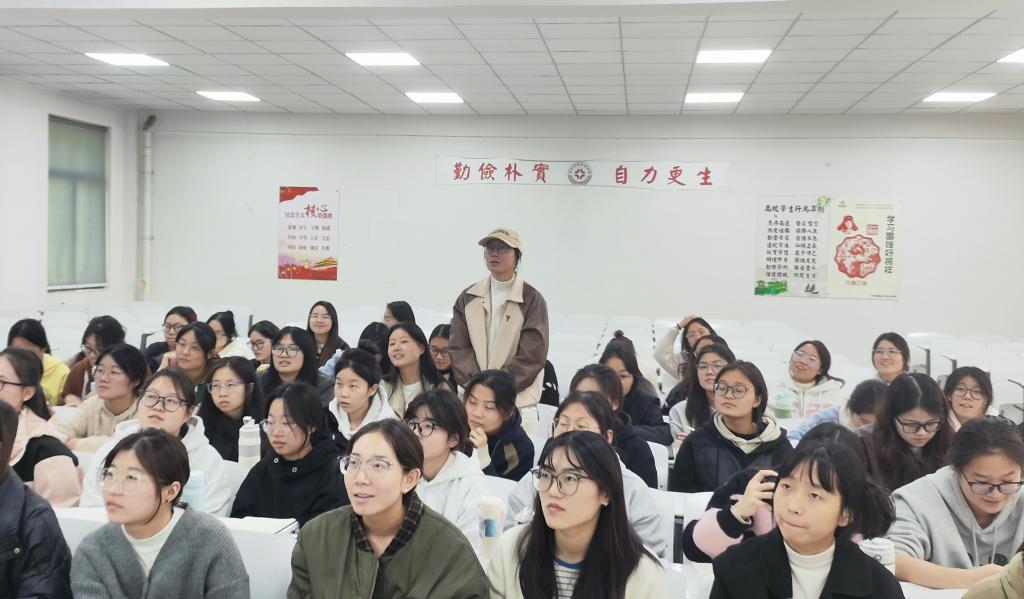 在课程安排方面,与会教师详细介绍了精心设计的课程体系。整体课程涵盖了考研英语的各个板块,包括词汇积累、语法剖析、阅读技巧训练、写作能力提升以及翻译专项等。初期着重于词汇与语法基础的夯实,通过系统讲解和趣味记忆方法助力学生打好根基。学生们认真聆听并参与讨论,班委代表根据学生的平时学习情况进行了具有代表性的发言。