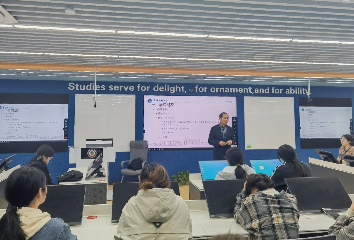 天津财经大学人文学院张建东副院长展示了天津财经大学人文学院研究生培养的软硬件基础,详细介绍了师资力量、学科优势、现有成果、人才培养目标及举措、培养手段和学生就业前景等情况,使同学们对该学院的研究生教育有了更深入的了解。