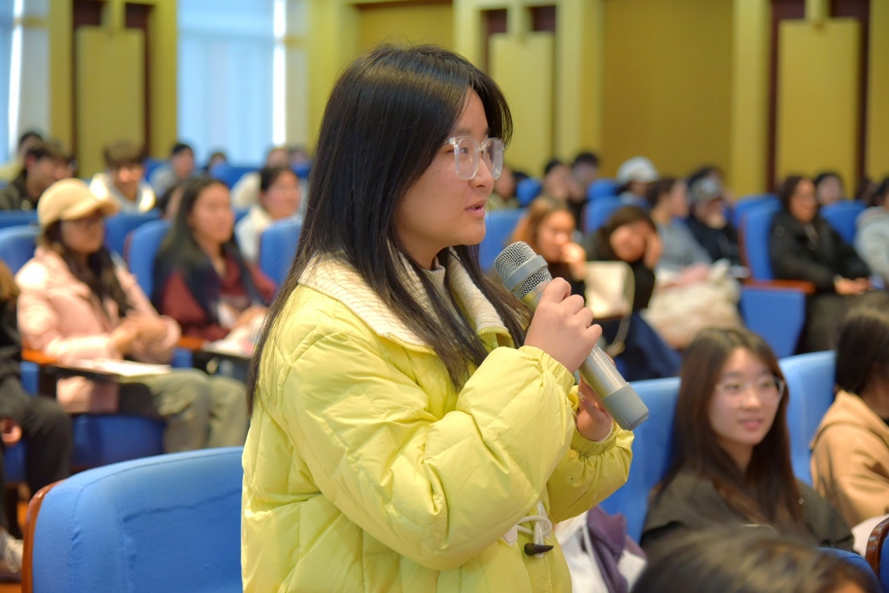 同学们认真听讲,积极思考,在互动环节主动提问,现场气氛活跃。两位经理在热烈的气氛中和同学们积极互动,详细回答了同学们的所有问题。