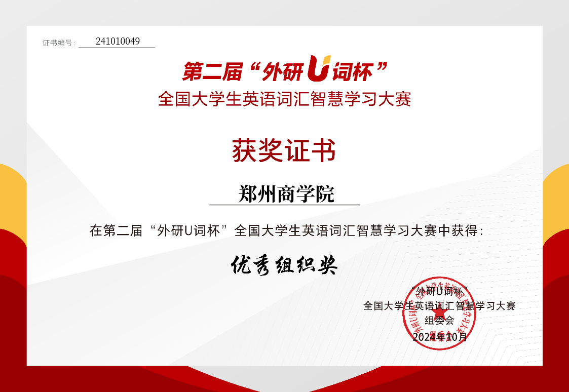 近日,全国大学生英语词汇智慧学习大赛圆满落幕。在外国语学院教师的精心组织和悉心指导下,我校学生在本次大赛中取得了优异的成绩。