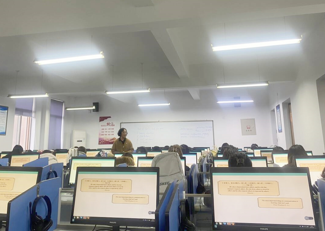 为深入贯彻学校对大学英语视听说课堂教学的高标准要求,推动课程教学改革,提高教学质量,向课堂四十五分钟要效率,12月3日下午,大学英语第一教研室在资讯楼开展了大学英语视听说教学观摩课活动,本次活动由教研室主任宣菡静主持,张庆芳、周娟两位副教授以及董赛、王平两位青年教师进行了教学展示,全体无课教师分组进行观摩学习。
