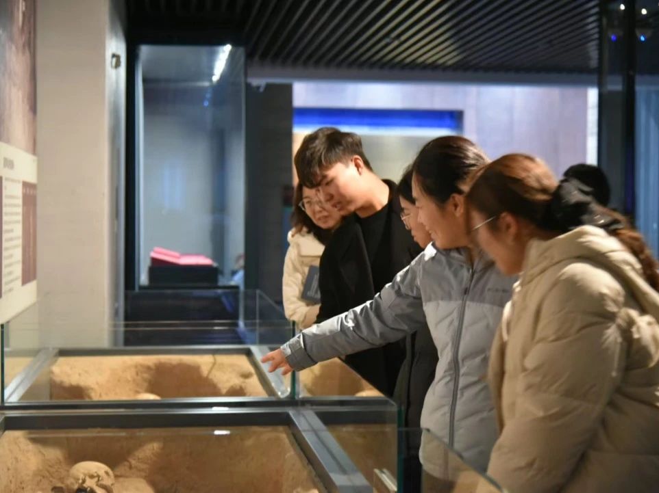 在解说员的引领下,大家先后参观了第一王朝、赫赫夏都、建中立极、厥土生民、世纪探索五个展厅,馆内藏有青铜器、陶器、玉器、绿松石器、骨角牙器等2000余件藏品,设计精美、铸作精湛,集中展示了二里头遗址作为“华夏第一王都”的丰富内涵。通过讲解员的解说,我校师生全面了解了夏代历史、二里头遗址考古成果、夏文化探索历程和中华文明探源工程的研究成果。展馆通过实物陈列、场景再现与多媒体互动的方式,使广大师生身临其境,穿梭于展品之间,细细品味着每个展品背后的故事,增进了大家对华夏文明历史发展脉络和河洛文化渊源的了解,深切感受到我国深厚的文化底蕴。