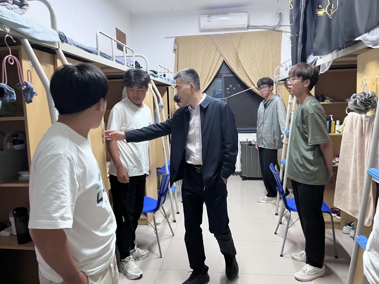 清扫活动开始,各学生干部和军训负责人进行区域和工作分配,随后深入到宿舍楼之间,迅速开展工作,耐心有序地整理归置物品、清扫地面、整理垃圾等,并且对清扫完毕的区域进行安全隐患排查。大家明确分工、默契配合,有条不紊地穿梭在宿舍楼道之间,清扫后的宿舍楼环境焕然一新。同时,在检查过程中,王克志书记就6、7、23号宿舍楼出现的问题提出整改要求。同时,在走访学生宿舍的过程中,与学生进行了亲切的交流,提醒学生要严格遵守学校的各项管理规定,落实好宿舍卫生、宿舍禁烟、文明规范、用电安全等要求。