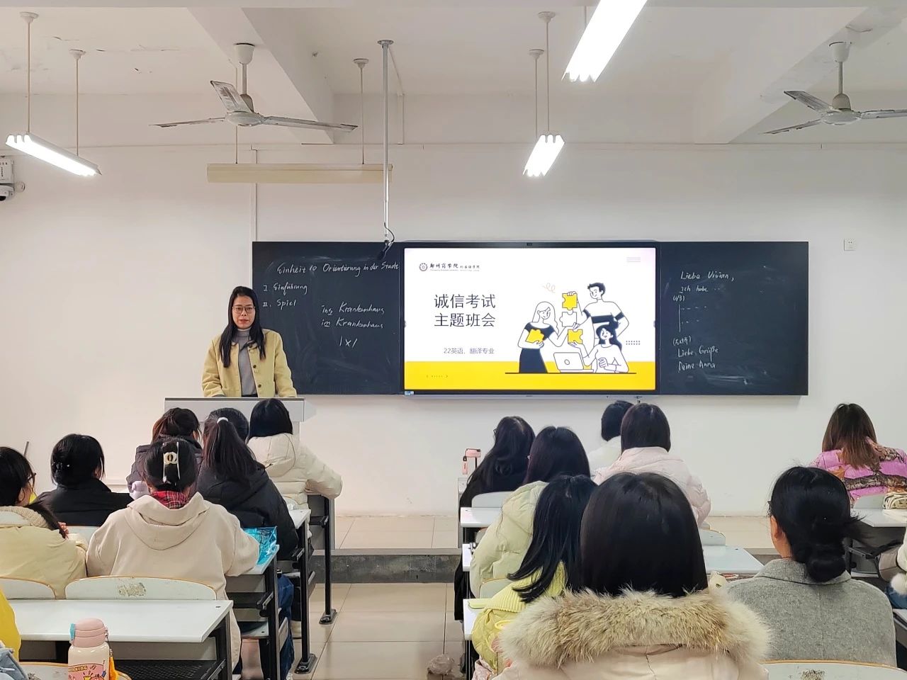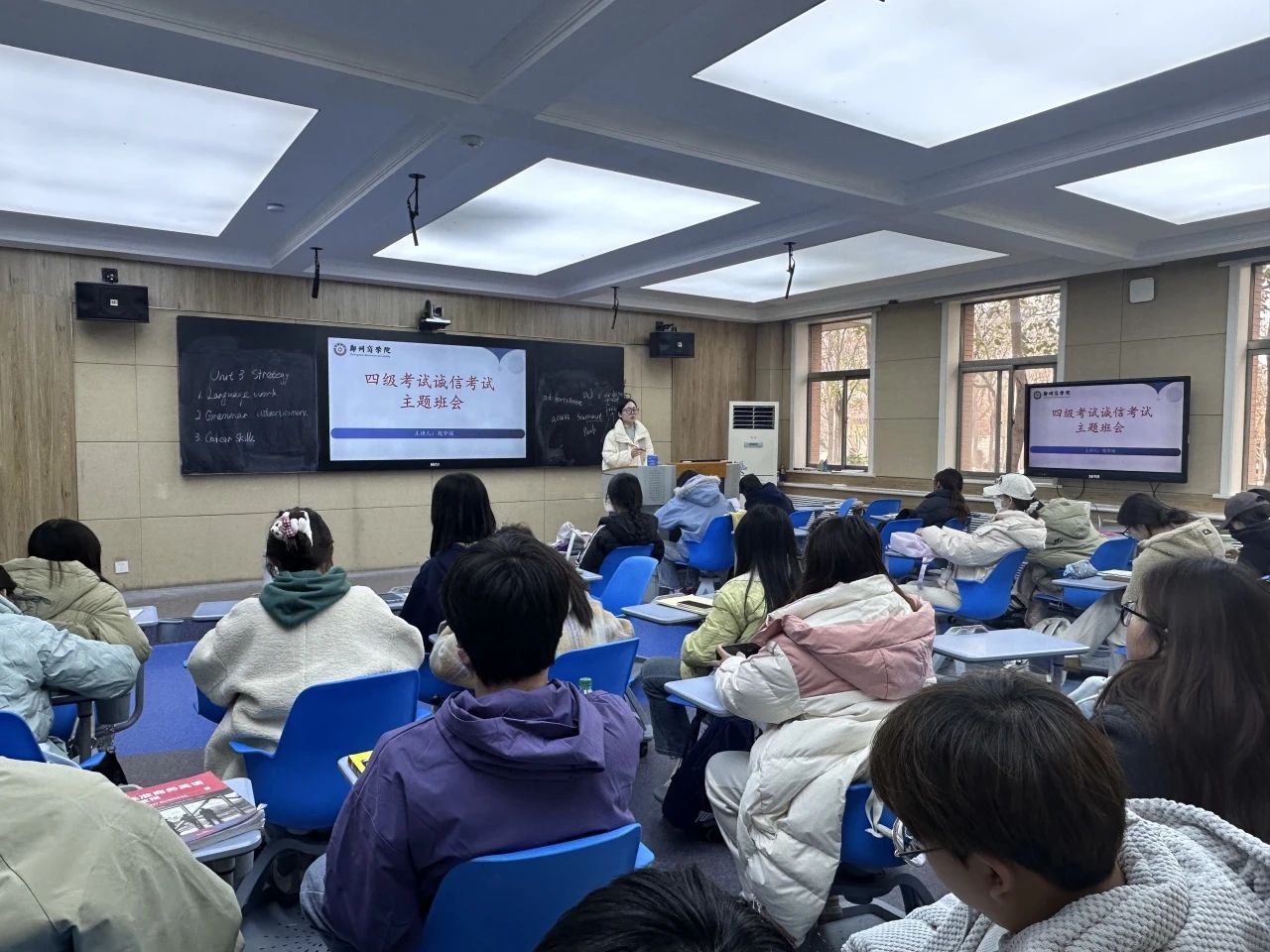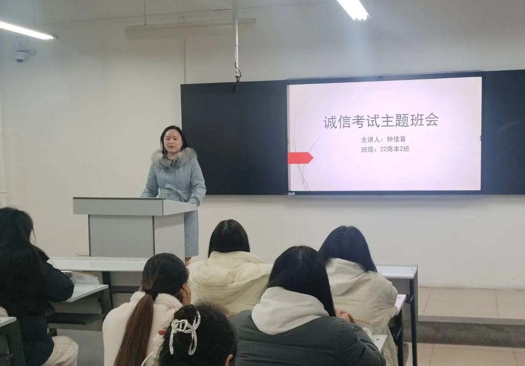班会伊始,辅导员向学生们阐述了大学生树立诚信意识的必要性,要求学生们养成良好学习习惯,自觉遵守学校规章制度,将诚信内化于心,外化于行。同时,班会还强调考试不仅是评价学生学习效果的一种手段,更是对同学们是否能够客观认识自己、正视自身差距、严格自我约束的一次检验。鼓励同学们要切实增强自尊心和自信心,提高诚信考试的意识,以良好的心态对待考试。班会上,辅导员向讲述了几个违规考试案例,并宣读了《中华人民共和国刑法》《国家教育考试违规处理办法》中有关违规考试的法律法规,旨在提醒同学们违规考试的危害和后果,引导同学们在考试中坚持诚信原则,严格遵守各项规章制度。