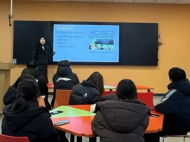 为深化新时代团的基层组织建设,提高团的凝聚力,强化我校广大团员青年的团员认同感,持续推进从严治团,切实加强团干部团队建设,增强团支部工作的主动性、积极性和创新性,促进支部间的交流学习,明确各班级团支书的工作职责。外国语学院团委于2024年12月19日召集各团支部举行团支书述职大会,会议由团委副书记于吉增主持,组织部成员及各年级团支书共同参与。