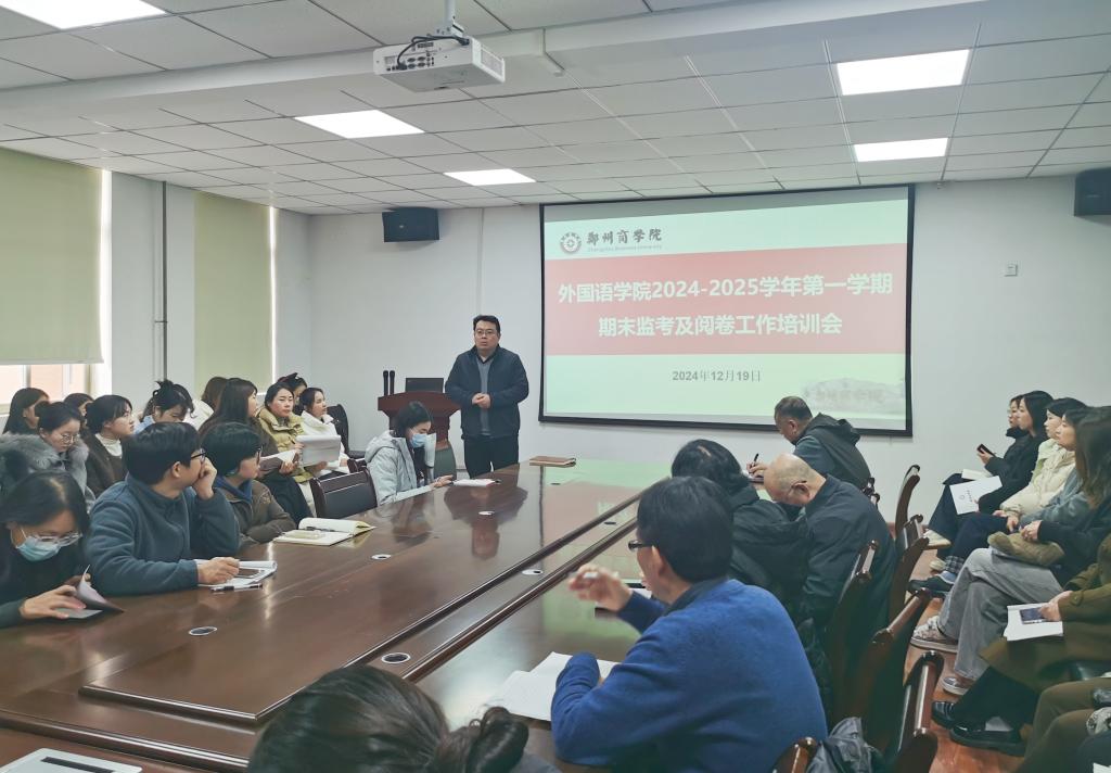 为持续推进教风学风协同建设,严肃考风考纪,确保期末考试工作顺利进行,12月19日,我院于W209会议室召开了期末监考及阅卷工作培训会。本次培训会由外国语学院赵保成副院长主讲,学院全体教师参与此次培训。