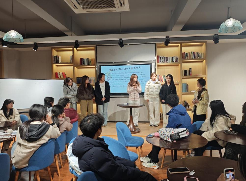活动还穿插了“谁是卧底”和“你画我猜”的英语小游戏,参赛者使用英文描述抽到的词语,观众投票选出“卧底”和猜出谜底,简单的互动为本次英语角增加了更多乐趣,让大家在欢笑中巩固了词汇,提升了语言运用能力。