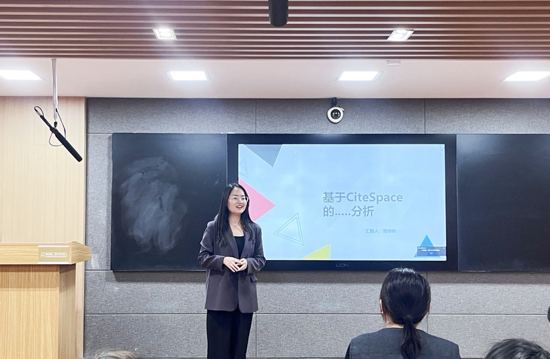 会议伊始,2023级理工课程组贺玲玲老师以《基于CiteSpace的国内语料库语言学可视化分析》为题,结合自身科研经验,系统演示了CiteSpace软件在语料库研究中的核心应用,重点从数据采集策略(如CNKI、Web of Science等数据库的精准筛选)、关键词共现与突现分析(揭示研究热点与前沿趋势)、科研合作网络构建(可视化呈现学者间学术关联)三个维度展开讲解。通过实际案例与操作演示,贺老师深入浅出地阐释了如何利用可视化工具挖掘学术数据背后的规律,为参会教师提供了可借鉴的科研路径。