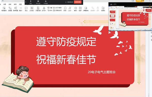 最后,辅导员们还为同学们送去了新春祝福,提醒大家向父母表达新春祝福和感谢。鼓励同学利用好假期,在奋斗和挑战中超越自己,迎接充满希望的一年。