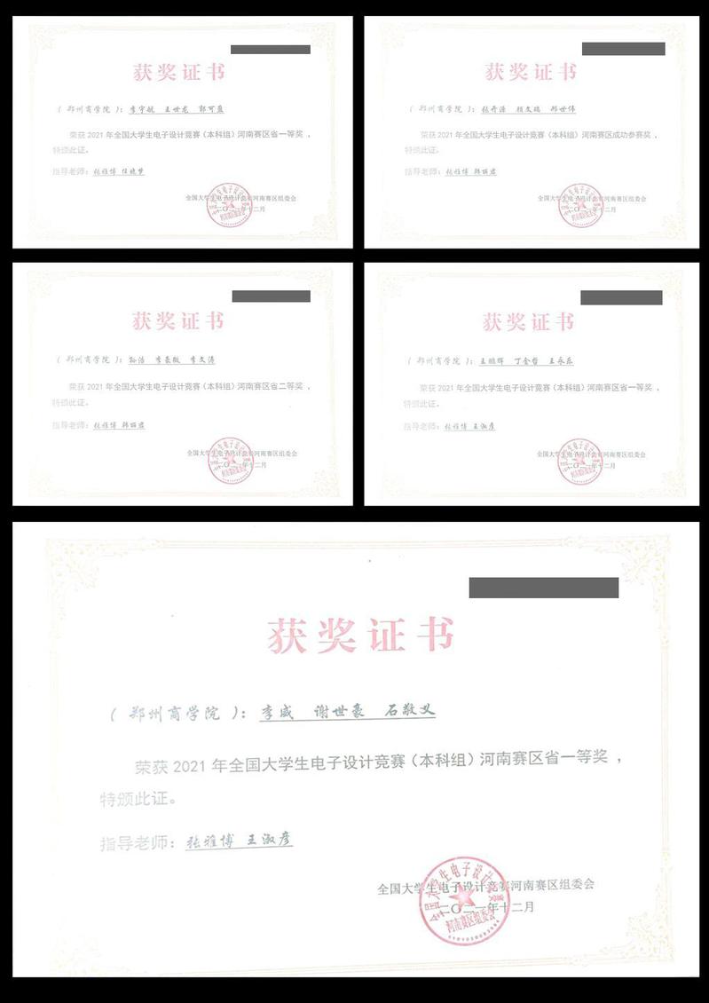 全国大学生电子设计竞赛是教育部高等教育司、工业和信息化部人事教育司共同主办的全国性大学生科技竞赛活动,旨在加强广大学生实践能力、创新能力和协作能力,吸引、鼓励广大学生踊跃参加课外科技活动,为优秀人才脱颖而出创造条件。2021年11月4日,999策略白菜手机论坛信工学院组织学生积极参加2021全国大学生电子设计竞赛。我校代表队取得了河南省一等奖3项、河南省二等奖1项和优秀奖1项的优异成绩。