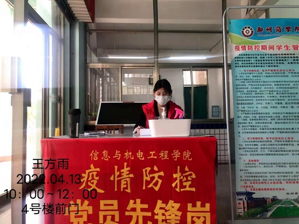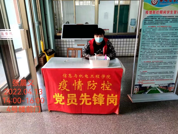 在4号楼、咨询楼等党员先锋岗位上,每一位党员、积极分子认真负责肩负起疫情防控的重要任务,确保每一位同学进入教学楼都佩戴口罩。