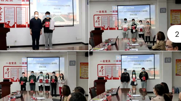 2022年4月19日晚7点信工学院首届求职大赛于4号楼104举办,出席本次活动的嘉宾及评委有信工学院党总支书记李帅,信工学院就业指导组老师张元炯、杨瑞瑞、李萌萌、裴杨、孔颖、李红颖、朱飞荣及信工学院14名学生代表。