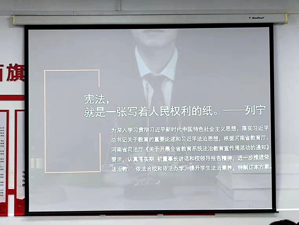 以习近平总书记关于教育的重要论述和习近平法治思想为指导,紧密结合学校实际,认真落实河南省教育系统“八五”普法规划,增强我院学生法律意识和法治观念,提高学生的法律法规知识水平和自觉运用法律法规来规范自身行为的能力,培养尊法、学法、守法、用法的信工学子。